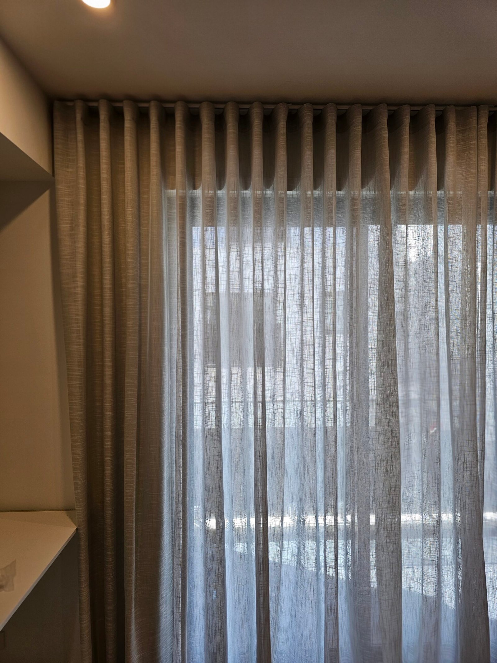 Can be layered with blockout or heavier curtains for adjustable light control and insulation.