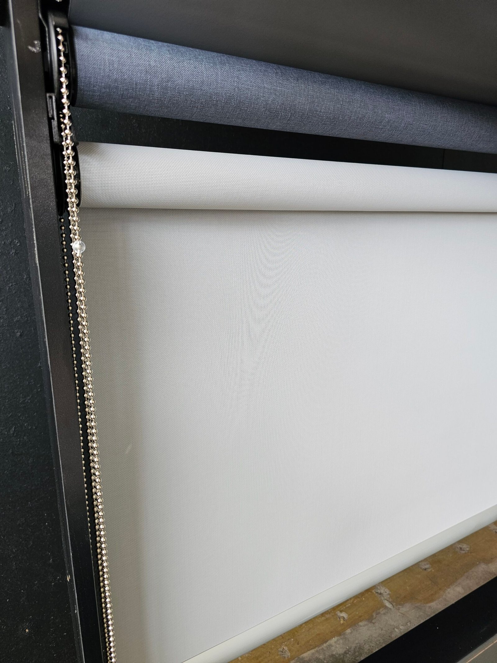 Double Roller Blinds feature two separate fabric layers on a single bracket — typically one sheer or sunscreen fabric for daytime light filtering and one blockout fabric for complete privacy. This dual system allows you to effortlessly switch between natural light and full darkness, offering the perfect balance of comfort, style, and functionality for any room.